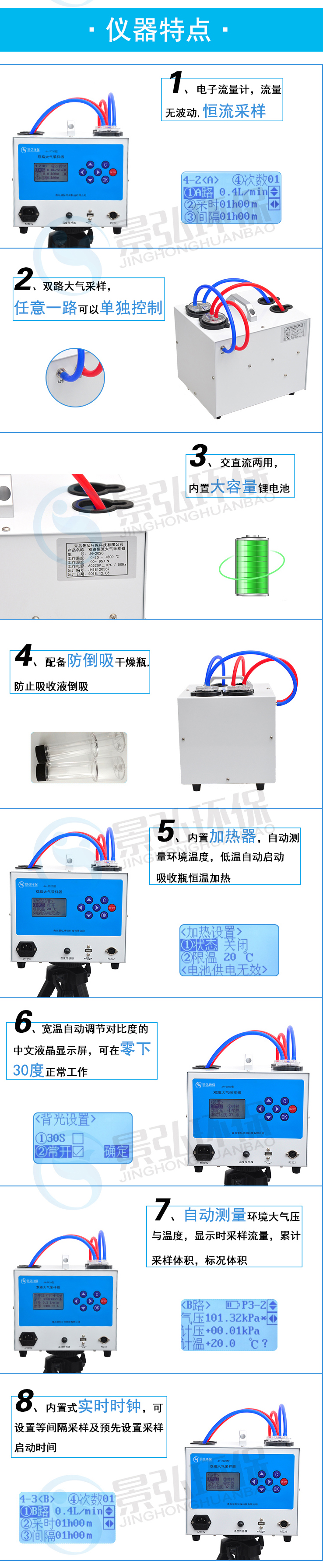 儀器具有雙路恒流采樣功能,穩(wěn)定性好、準(zhǔn)確性高等優(yōu)點(diǎn)。在加有較大負(fù)載的情況下,在規(guī)范要求的流量范圍內(nèi),仍可準(zhǔn)確顯示真實(shí)采樣流量。